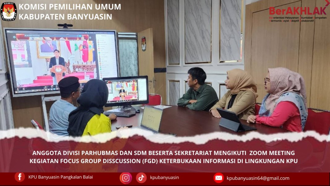 #Temanpemilih, Anggota KPU Kabupaten Banyuasin divisi Parhubmas dan SDM bapak Syahrul Ramadhoni beserta staf mengikuti Zoom Meeting kegiatan Focus Group Disscussion (FGD) Keterbukaan Informasi di Lingkungan KPU. #KPUmelayani ....