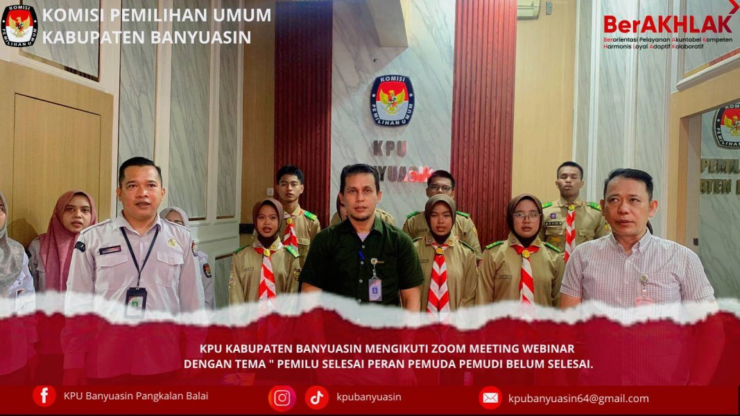 KPU Kabupaten Banyuasin Mengikuti Zoom Meeting Webinar Dengan Tema Pemilu Selesai Peran Pemuda Pemudi Belum Selesai