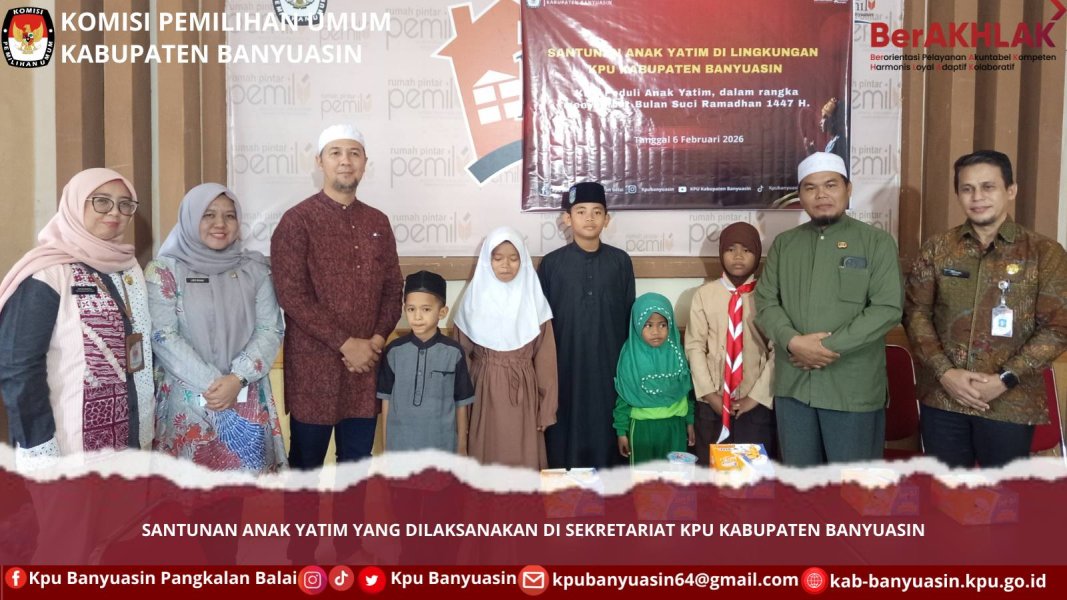 #TemanPemilih, Jumat (06/02/2026) KPU Kabupaten Banyuasin melaksanakan kegiatan Santunan Anak Yatim yang dilaksanakan di Sekretariat KPU Kabupaten Banyuasin.