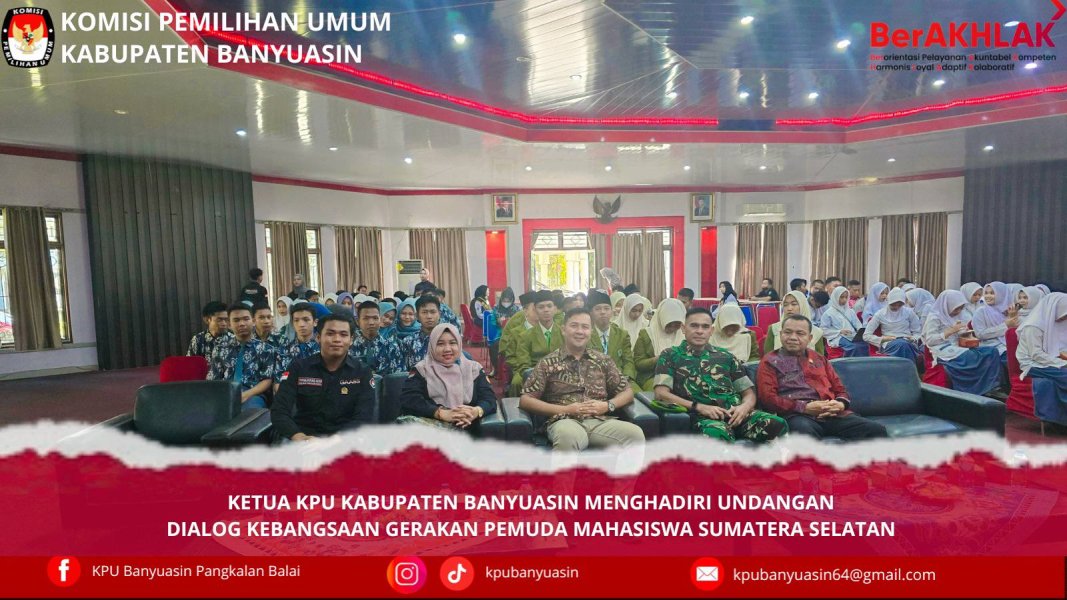 #Temanpemilih,(kamis,31/7/2025) Ketua KPU Kabupaten Banyuasin menghadiri undangan dialog kebangsaan gerakan pemuda mahasiswa sumatera selatan dengan tema" peran pemuda, mahasiswa dan pemuda dalam merawat kebhinekaan untuk memperkuat rasa nasionalisme".